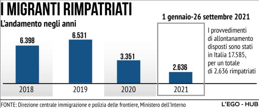 I migranti rimpatriati dall'Italia dal 2018 al 2021