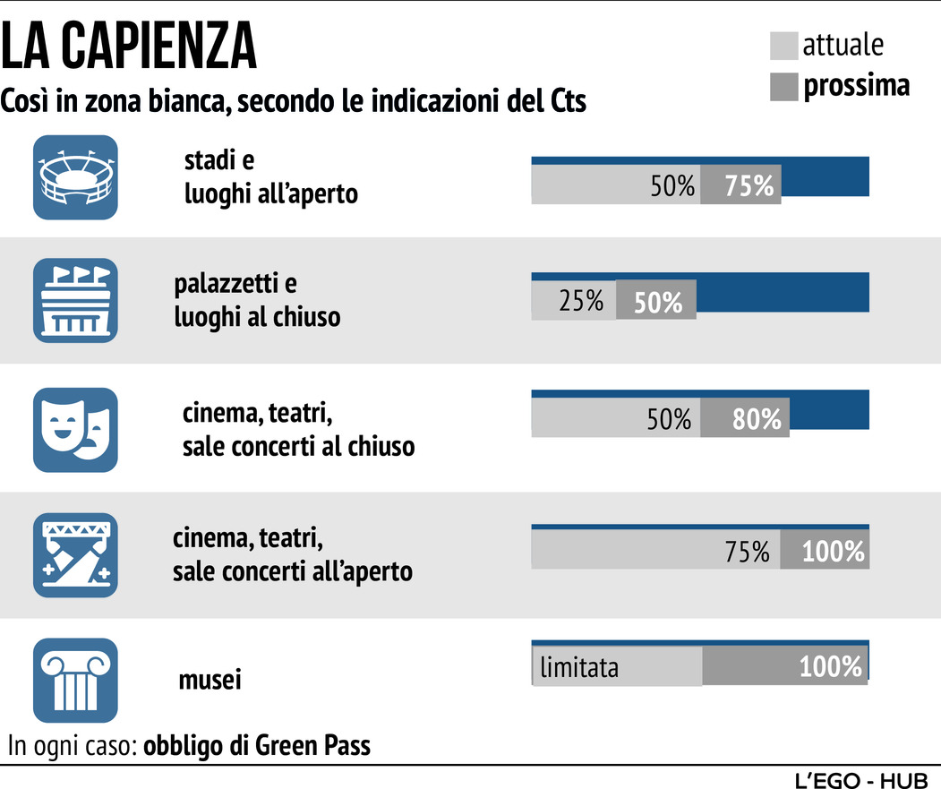 Covid, dagli stadi ai cinema: le capienze in zona bianca