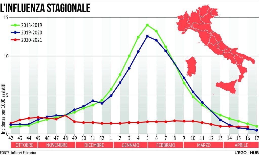Influenza stagionale: andamento negli ultimi 3 anni da ottobre ad aprile
