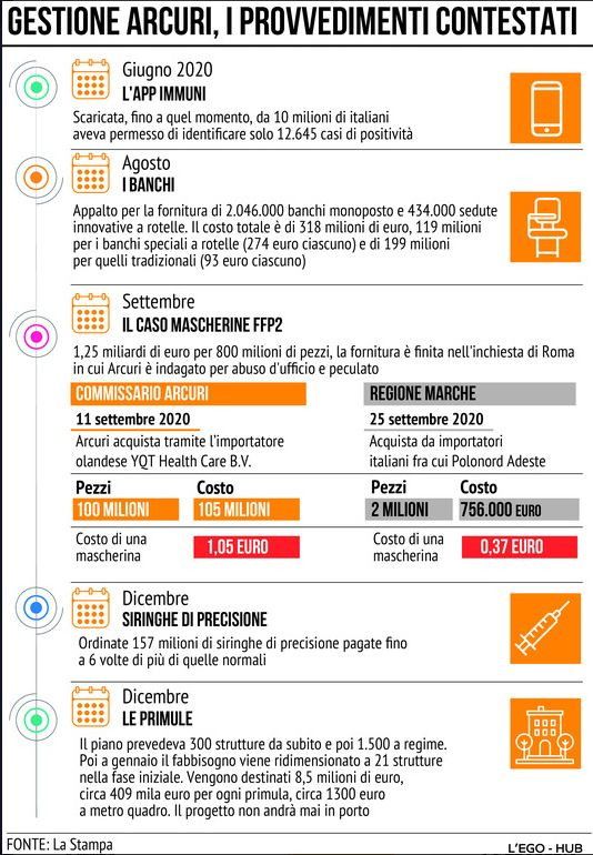 Gestione Arcuri, dalle siringhe alle mascherine: i provvedimenti contestati