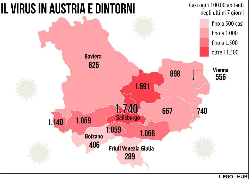 Covid, l'andamento del contagio in Austria e dintorni