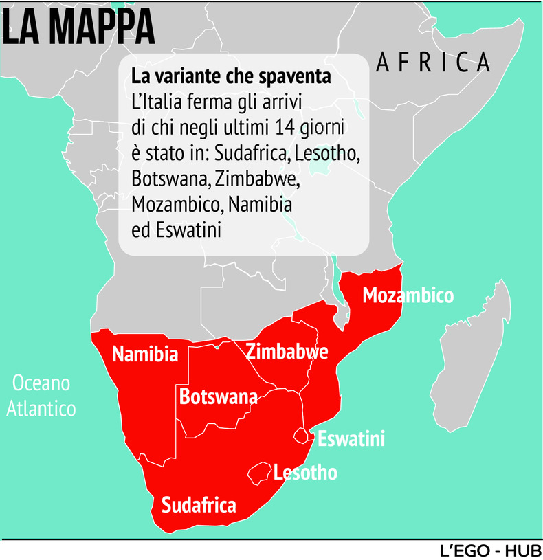 Variante sudafricana, i sette Paesi dai quali l'Italia ha bloccato i viaggi