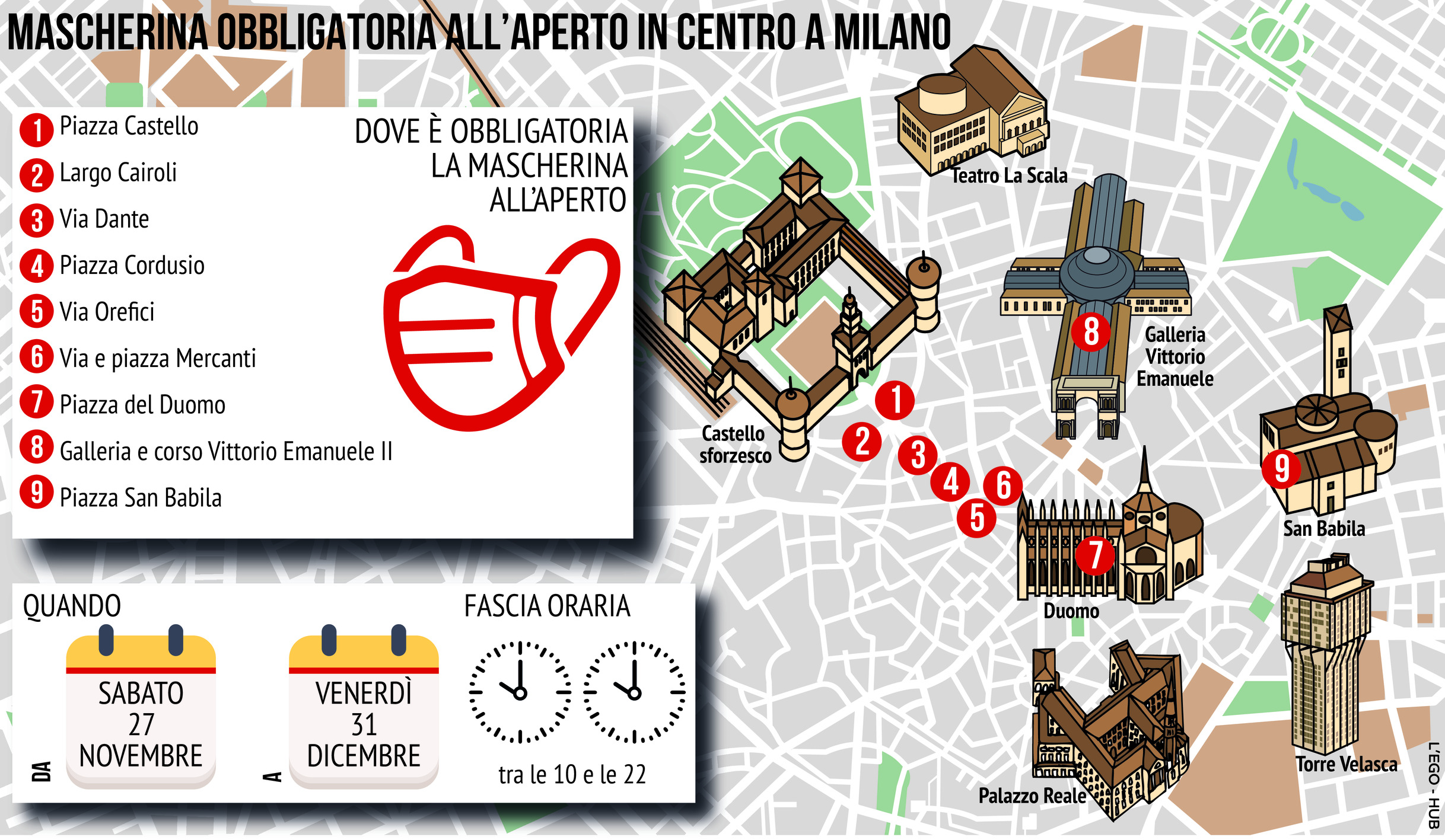 Mascherine all'aperto a Milano: la mappa degli obblighi