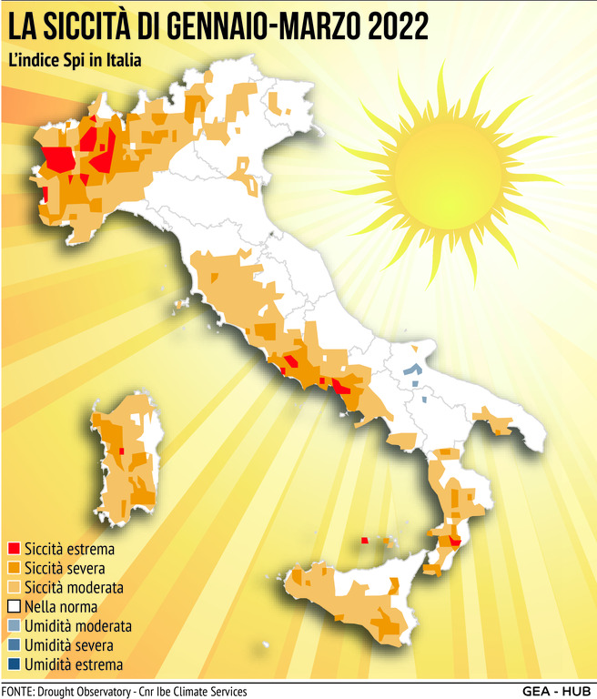 Clima, la siccità in Italia nel periodo gennaio-marzo 2022
