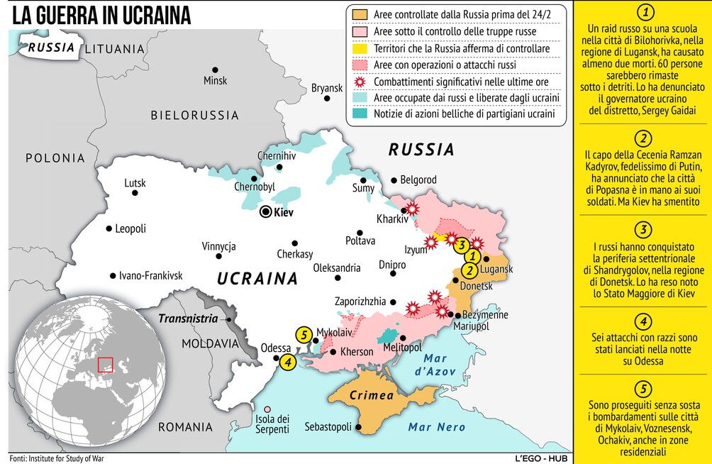 Ucraina, la mappa aggiornata della guerra