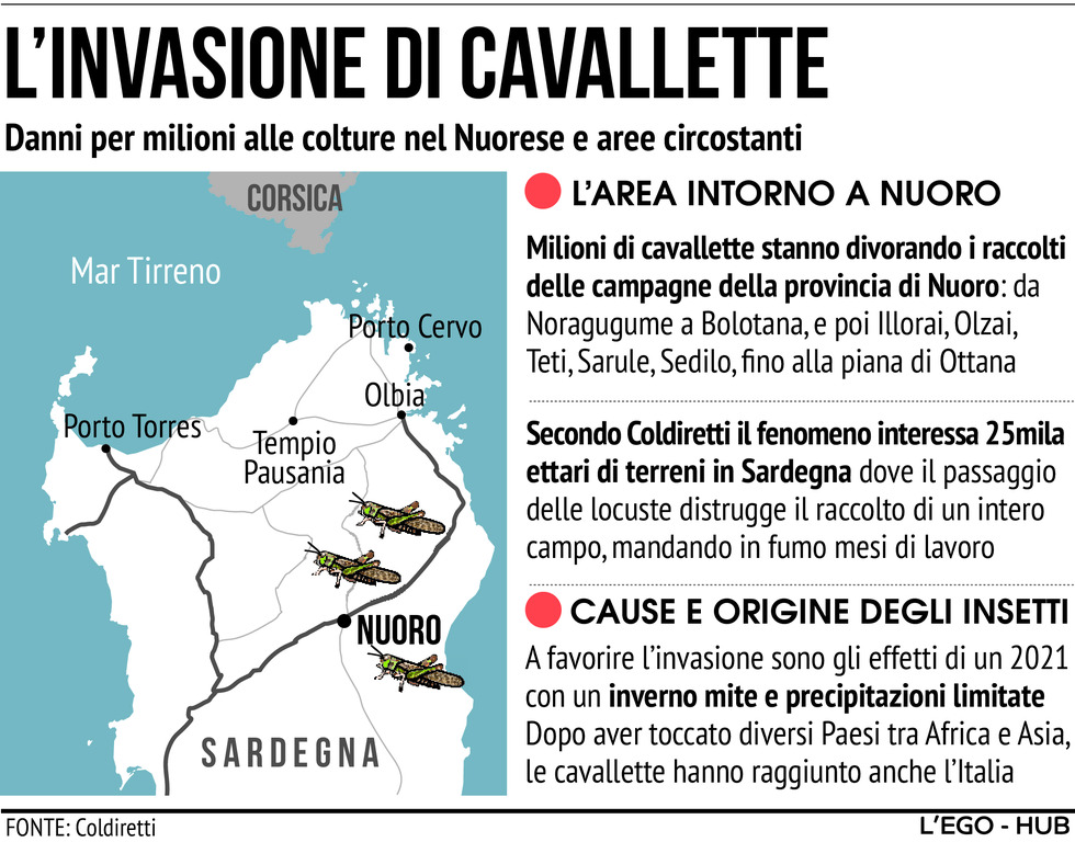 Nuova invasione di cavallette in Sardegna, colpiti 25mila ettari