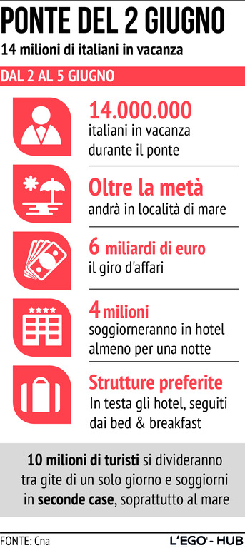 2 giugno, 14 milioni di italiani in vacanza per il ponte