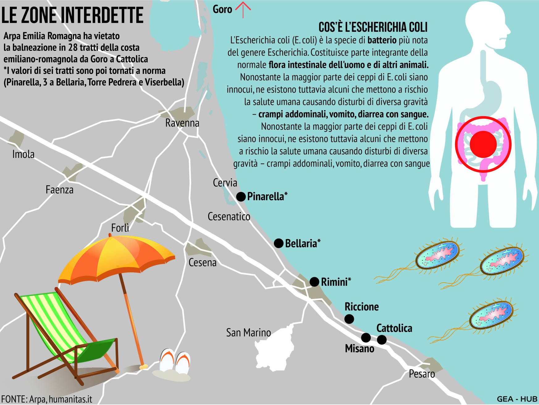 Le zone interdette alla balneazione in Romagna