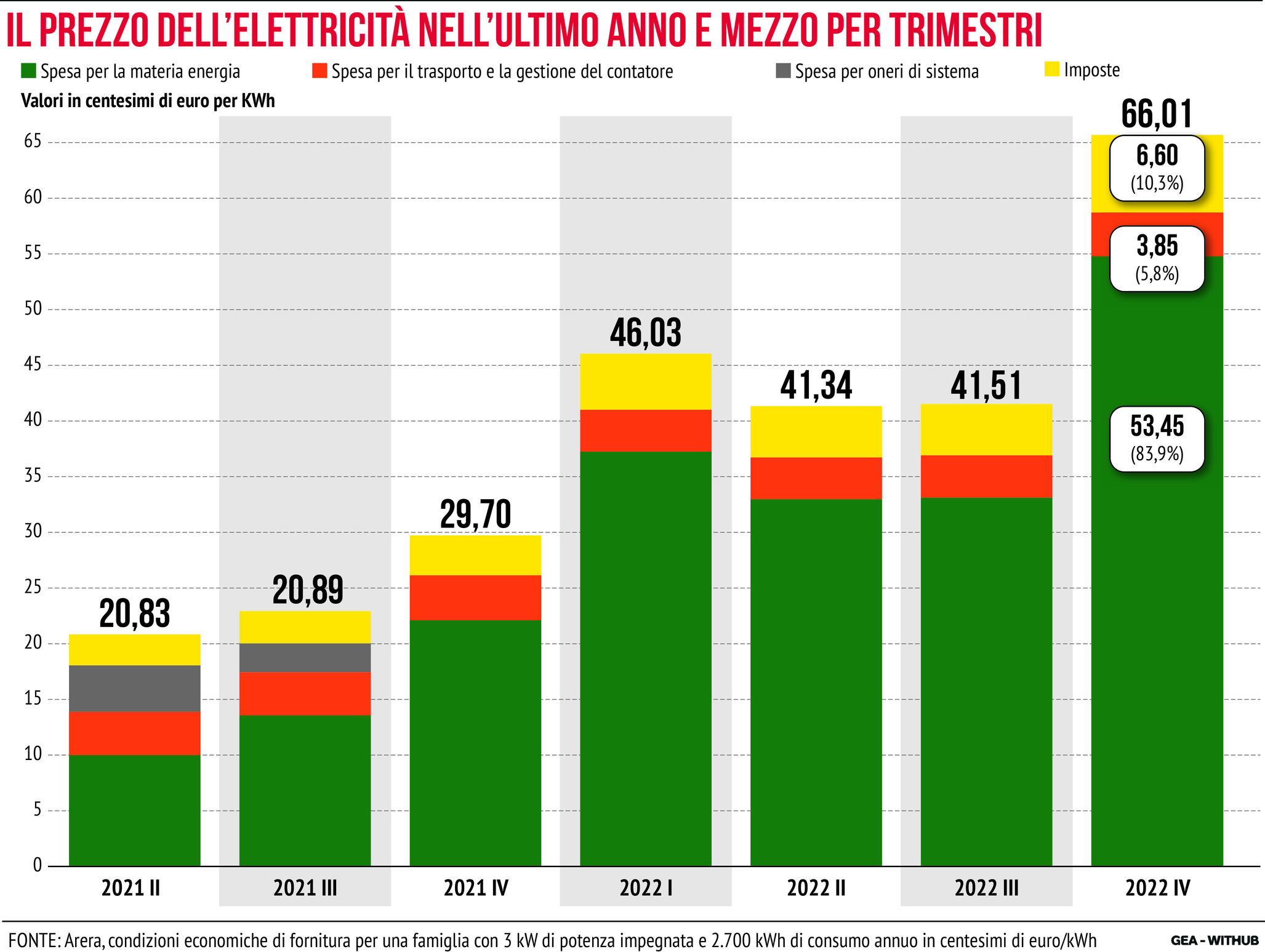 Il prezzo dell'elettricità nell'ultimo anno e mezzo