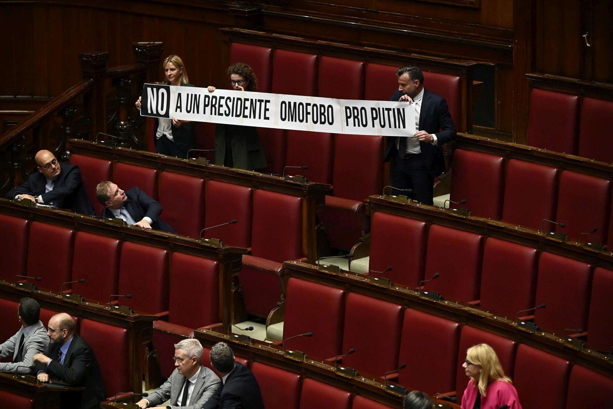 Camera, striscione contro Fontana: "No a un presidente omofobo pro Putin"