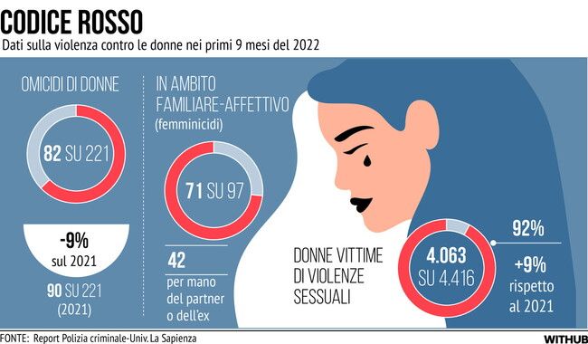 Violenza sulle donne, i dati italiani dei primi nove mesi del 2022