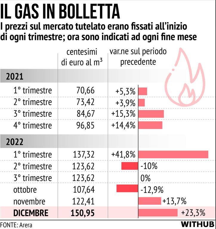 ll gas in bolletta, prezzi Arera nel 2021 e 2022