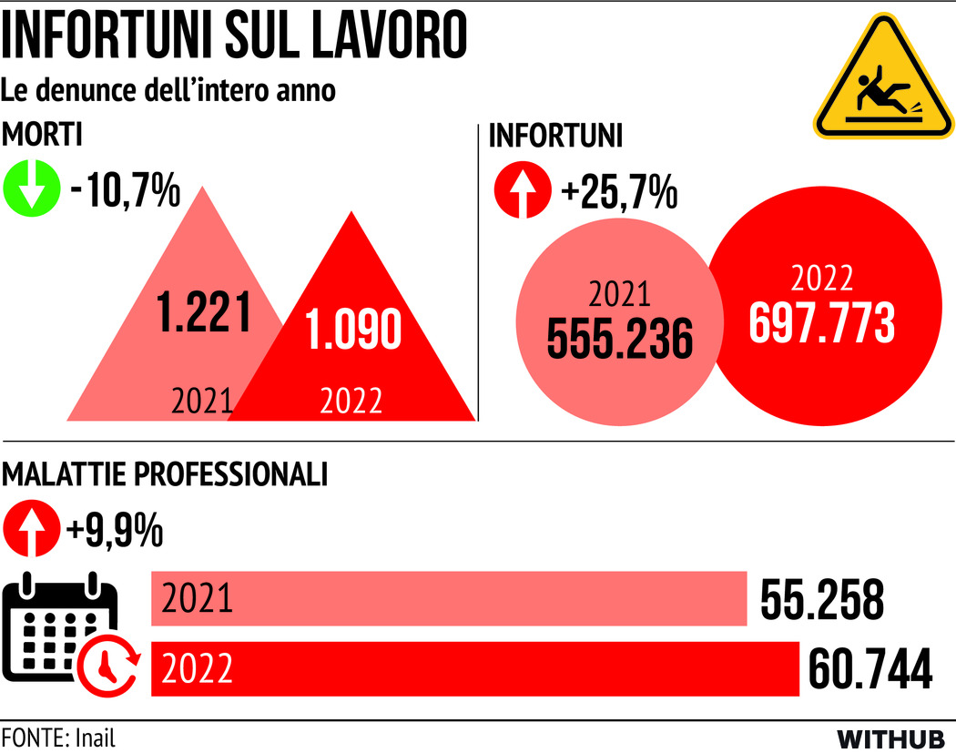 Incidenti sul lavoro, nel 2022 meno morti ma più infortuni