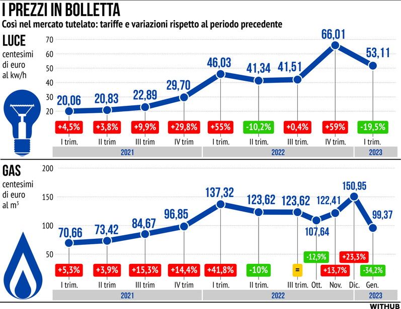 I prezzi in bolletta per luce e gas