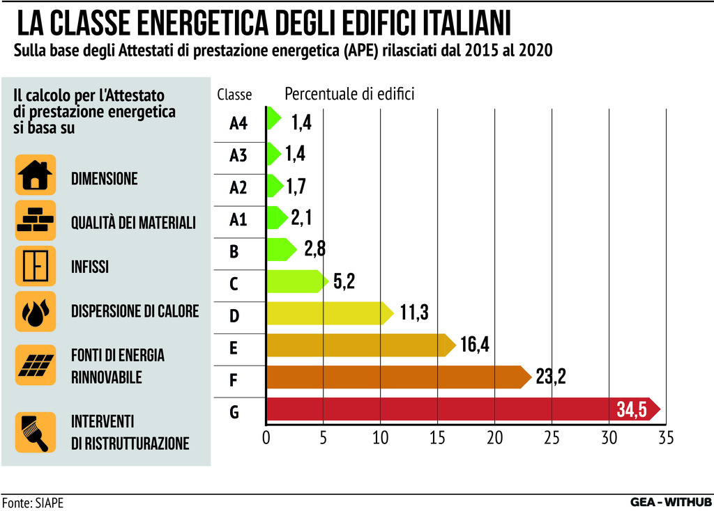 La classe energetica degli edifici italiani: ecco su quanti si dovrà intervenire