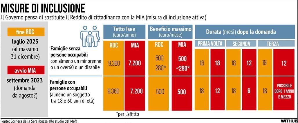 Dal Reddito di cittadinanza alla Misura di inclusione attiva, la nuova "Mia" allo studio del governo