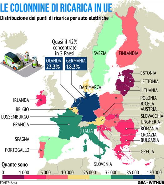 Le colonnine di ricarica in Ue