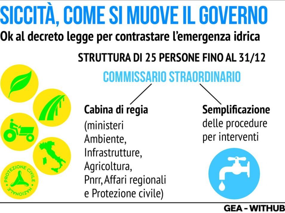 Siccità, come si muove il governo: cabina di regia e commissario straordinario