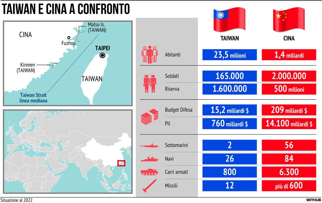 Abitanti, militari e armi: Taiwan e Cina a confronto