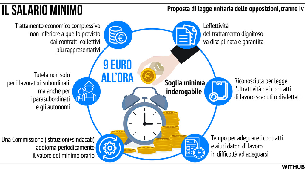 Le opposizioni si accordano sul salario minimo a 9 euro l'ora (ma Renzi si sfila)