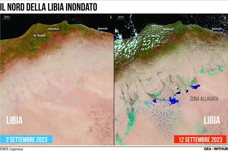 Inondazioni in Libia, le foto satellitari