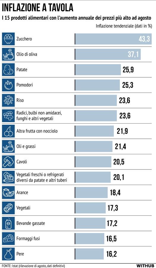 Cibo e inflazione, i prodotti alimentari e le province più rincarati ad agosto 2023