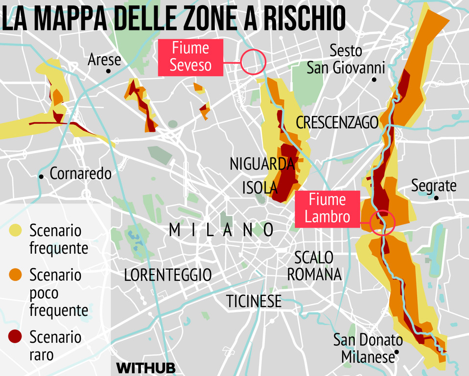 Maltempo, i fiumi Seveso e Lambro "spaventano" Milano: le aree a rischio