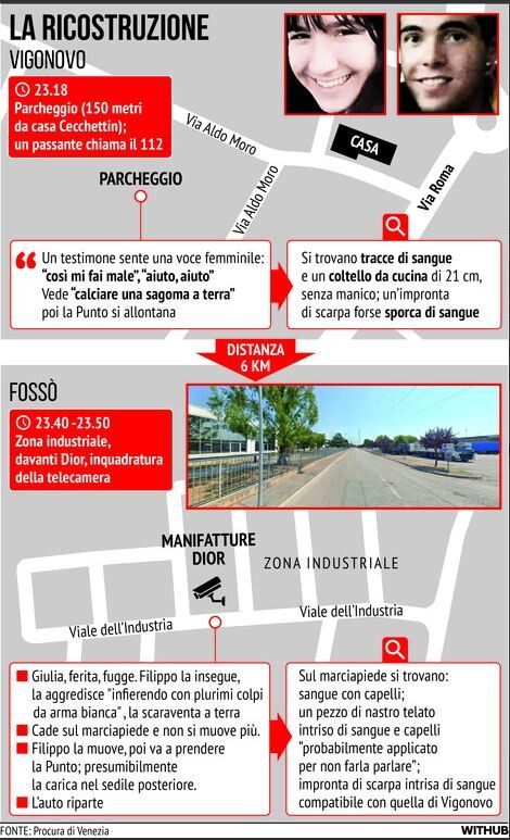 Le violenze su Giulia Cecchettin in due tempi, a Vigonovo e Fossò