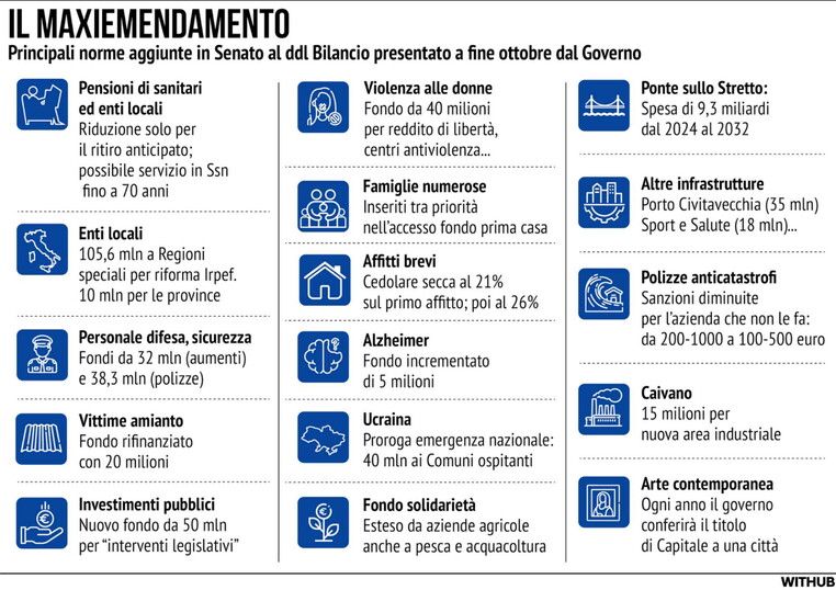 Il maxi emendamento: le principali norme aggiunte in Senato al ddl Bilancio