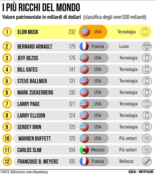 I PATRIMONI IN MILIARDI DI DOLLARI