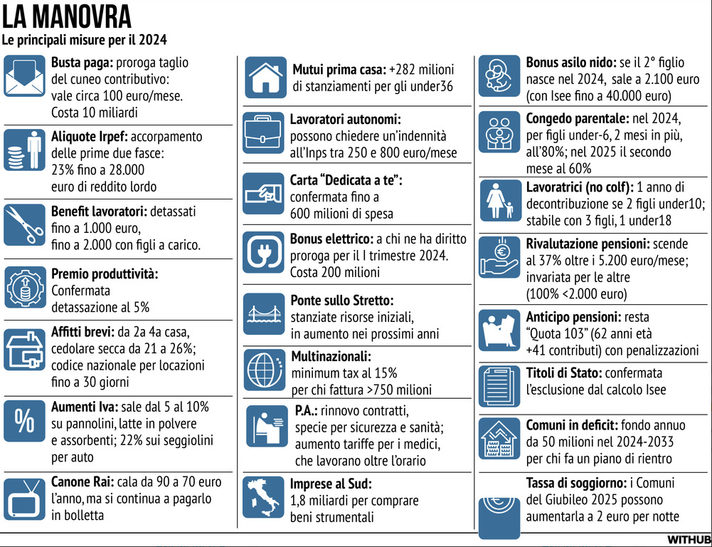 Manovra, le principali misure per il 2024