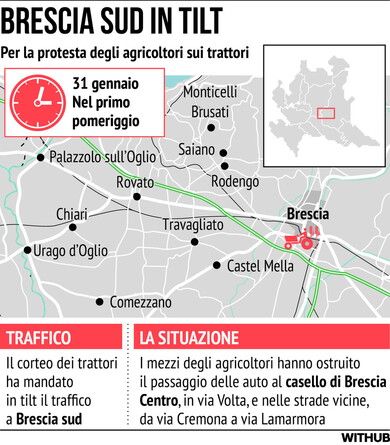 Brescia, la protesta degli agricoltori con i trattori