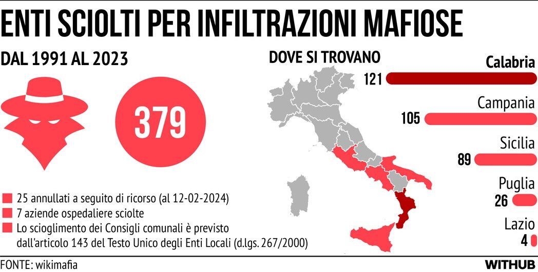Mafia, Comuni ed enti sciolti per infiltrazioni tra il 1991 e il 2023