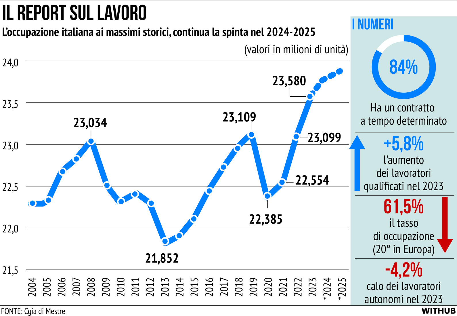 Lavoro, report Cgia: occupazione ai massimi