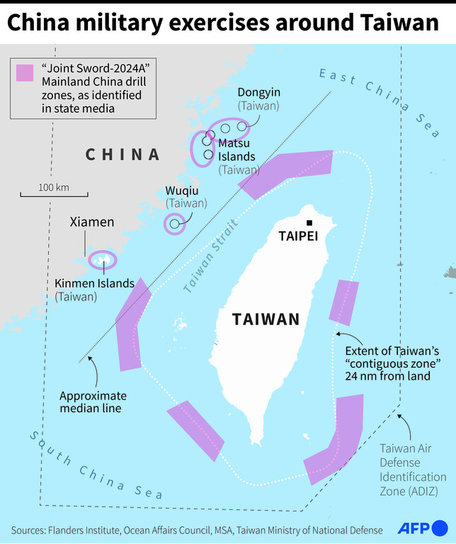 Taiwan, maxi esercitazione cinese intorno all'isola