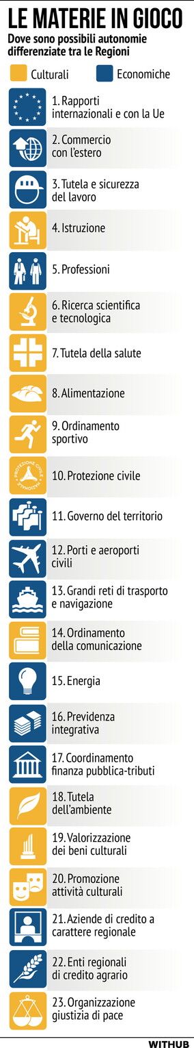 Autonomia differenziata, ecco cosa le Regioni potranno gestire