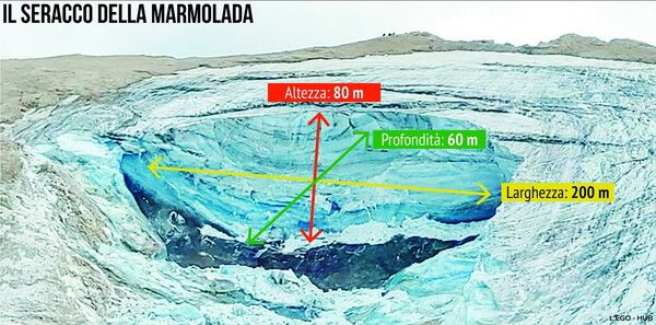 Tragedia Marmolada, le dimensioni del seracco che travolse e uccise 11 alpinisti