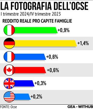 Famiglie, il reddito reale pro capite secondo l'Ocse