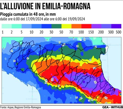 Maltempo, la pioggia cumulata in Emilia Romagna