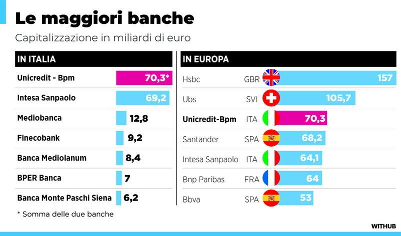 Come cambierebbe lo scenario delle maggiori banche se andasse in porto l'operazione Unicredit-Bpm