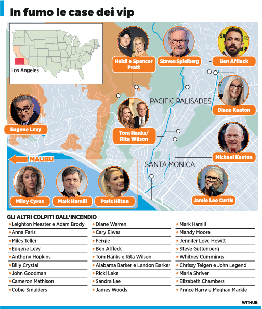 Incendi a Los Angeles, le case dei vip andate in fumo