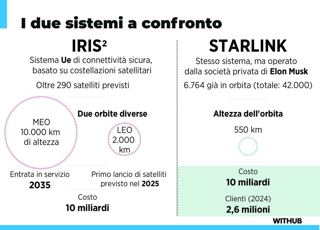 Spazio, i sistemi satellitari Iris2 e Starlink a confronto
