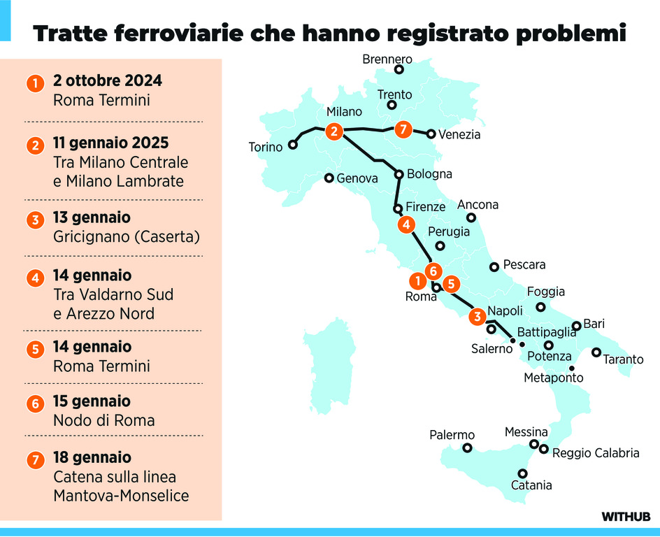 Treni, le tratte ferroviarie che hanno registrato problemi