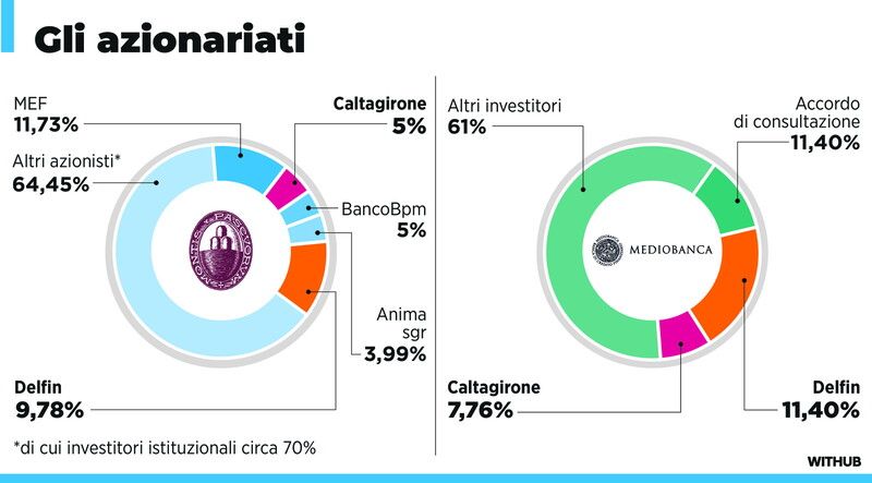 Banche, gli azionariati di Mps e Mediobanca