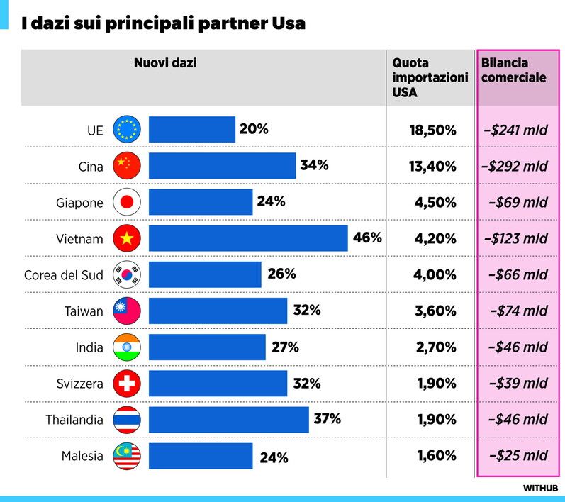 Dazi Usa: 20% sulle importazioni dall'Ue, 34% dalla Cina