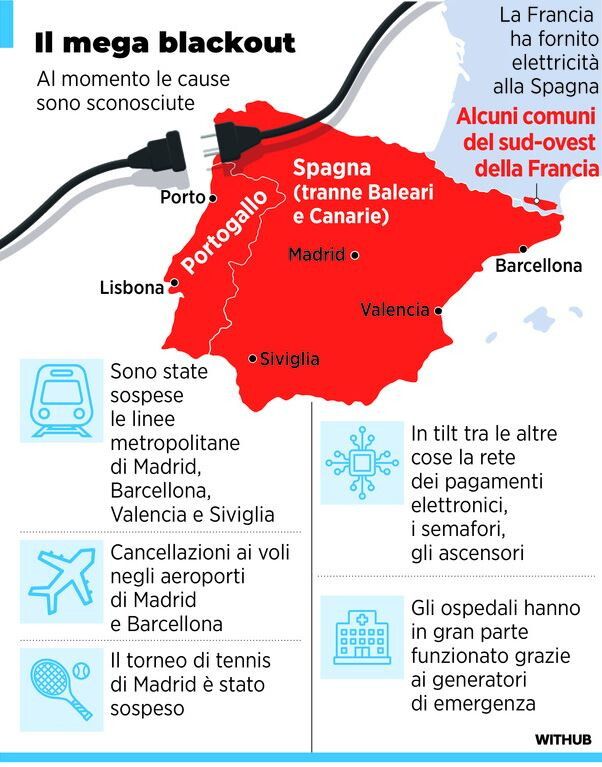 Maxi blackout in Spagna e Portogallo: in tilt la rete elettrica