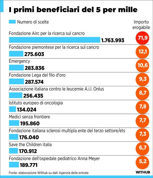 Cinque per mille, chi sono i principali beneficiari in Italia
