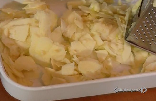 © Da video|Sbucciare tre mele, quindi affettarle con la mandolina (la parte laterale della grattugia)