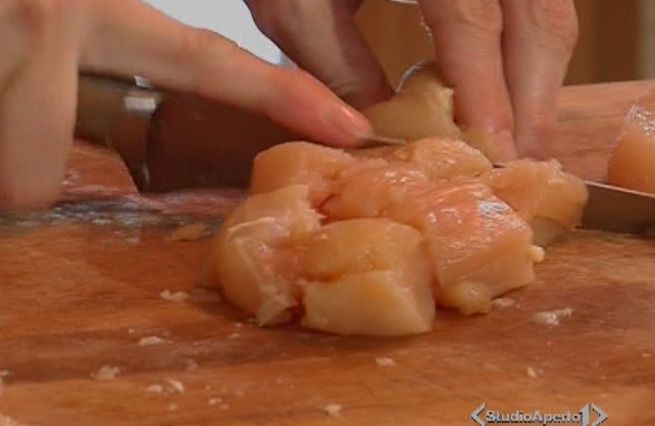 © Da video|Rimuovere la buccia e tagliare a tocchetti due patate bollite