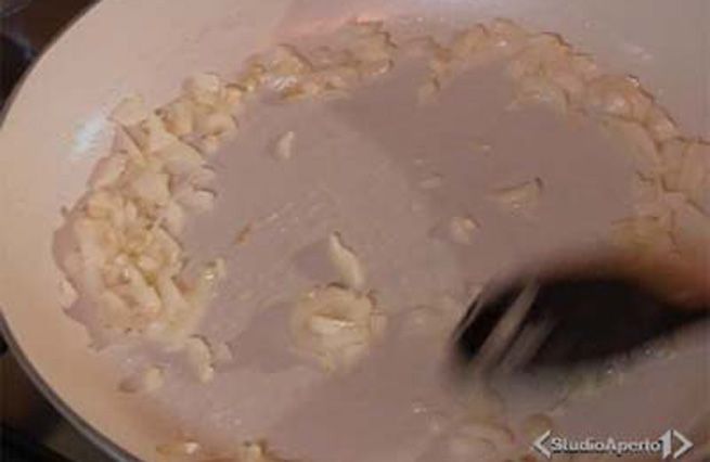 © Da video|Tritare la cipolla e farla soffriggere con un po' d'olio (deve rimanere un po' croccante)